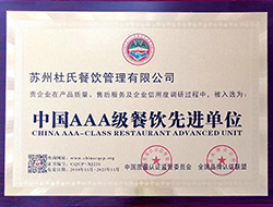 中國AAA級餐飲先進(jìn)單位-杜氏餐飲